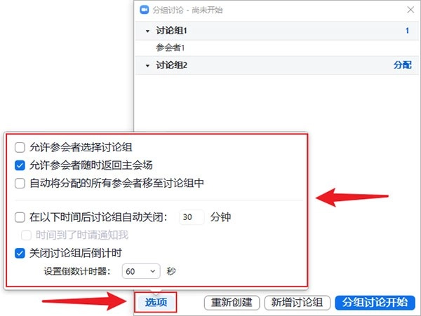 步骤三:把某些参会者分配到1个讨论组里;