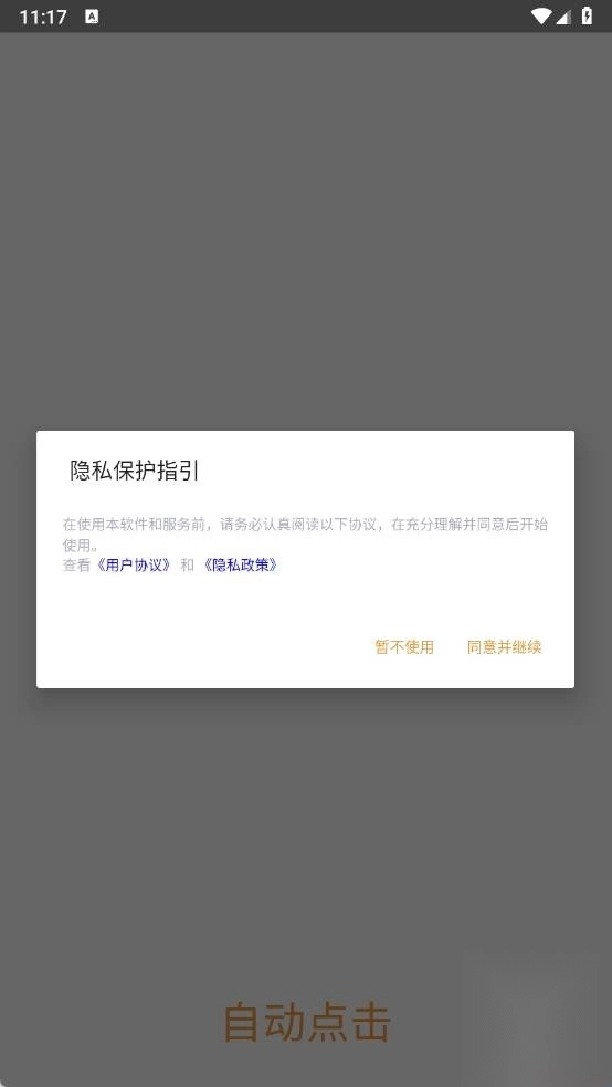 1、打开WY自动点击软件点击同意并继续