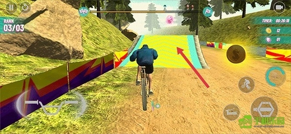 4、掌握基础操作方法后就能正式开启游戏了,骑行过程中,让自行车通过加速道能使你的速度变得更快哦