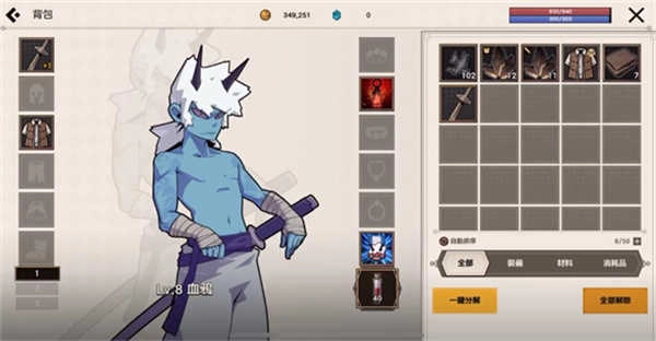 -在右上角,你可以点击背包查看自己获得的装备,或更换当前穿戴的装备。合理搭配装备,打造最强战斗力,轻松应对地下城中的各类挑战。