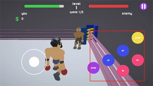 3、顺利的进入到拳击台上之后,玩家将需要通过移动左下方的圆形按钮来进行角色的移动和躲避;