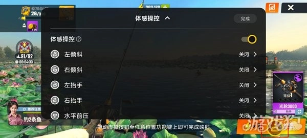 先开启体感遥控功能,接着打开陀螺仪的开关,最后点击右上角的“完成”按钮就可以了。