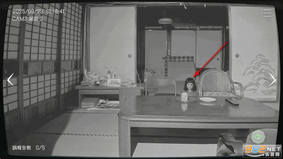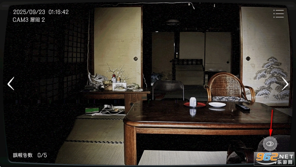 点击眼睛可以在普通摄像头和红外线摄像头之间切换,去发现异常,比如突然出现的鬼影、物品移位或者消失等