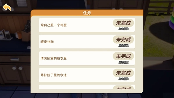 5、游戏主要内容是“今日计划”,玩家需要帮助盖瑞完成今日计划,点击其中一个任务,会有箭头标识提示玩家方向。