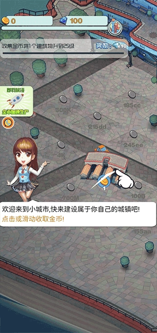 3、可以自由建设后,就可以对着自己的小镇点击点击了,这样会获得金钱,以后也可以拿这些金钱用于城市建设、升级。