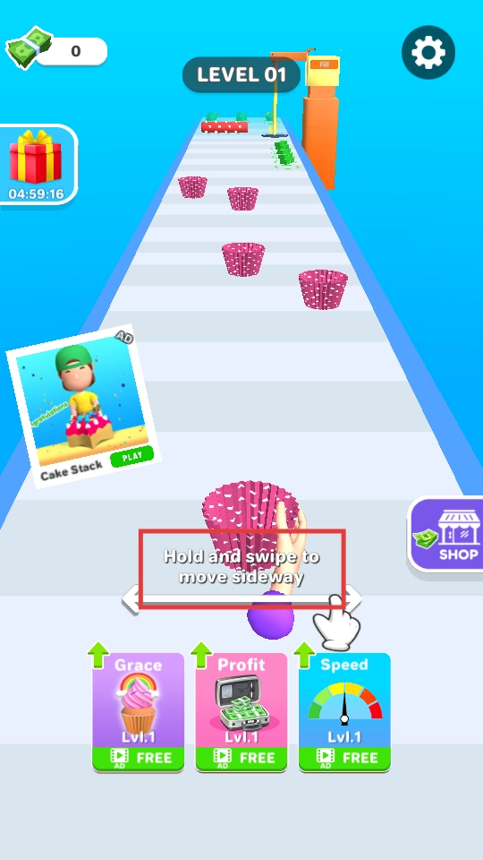 进入【LEVEL-01】关卡,用手指按住屏幕左右滑动,操控粉色纸杯移动,开启收集之旅。