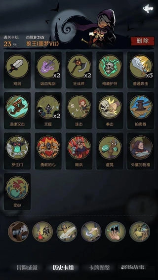 核心思路是借助攻击牌来触发装备牌的特效,关键卡片包括吸血鬼剑、狂战戟、罗生门以及增援。所以,只要是和攻击牌相关的卡片都可以保留,理想状态下则是保留与抽牌、装备相关的卡片。