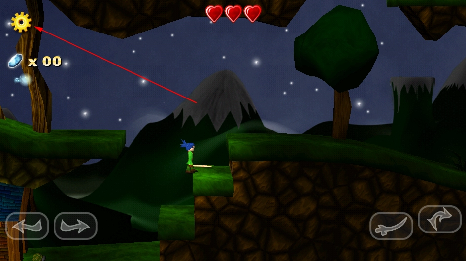2、接着我们跳上台阶来到如下图所示的场景中,我们能看到一个问号牌,此牌子告诉我们如何进行2段跳,2段跳方法:点击跳跃,当主角在空中时再次点击跳跃键即可