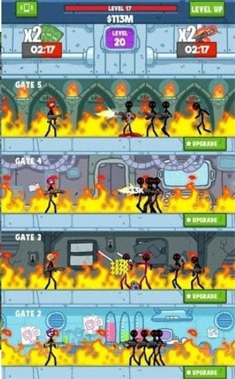 这里有超过五十种各具特色的角色可供选择,还有威力强大的武器能为你的火柴人部队配备;你能借助专属技能来增加钞票的获取速度,需要动脑筋积累更多财富。