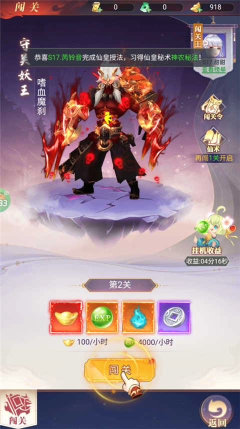 2、挑战闯关妖王,解锁更多功能!