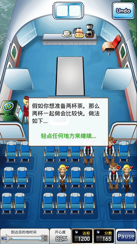 游戏采用鼠标操控,玩法与同类作品基本一致。而新颖的主题赋予了它独特的流程设计:玩家需要为乘客制作饮品和餐食、递上毛毯与耳机、收拾用过的餐具;一旦遇到飞机上的突发状况,还得立刻暂停手头工作去紧急处理。