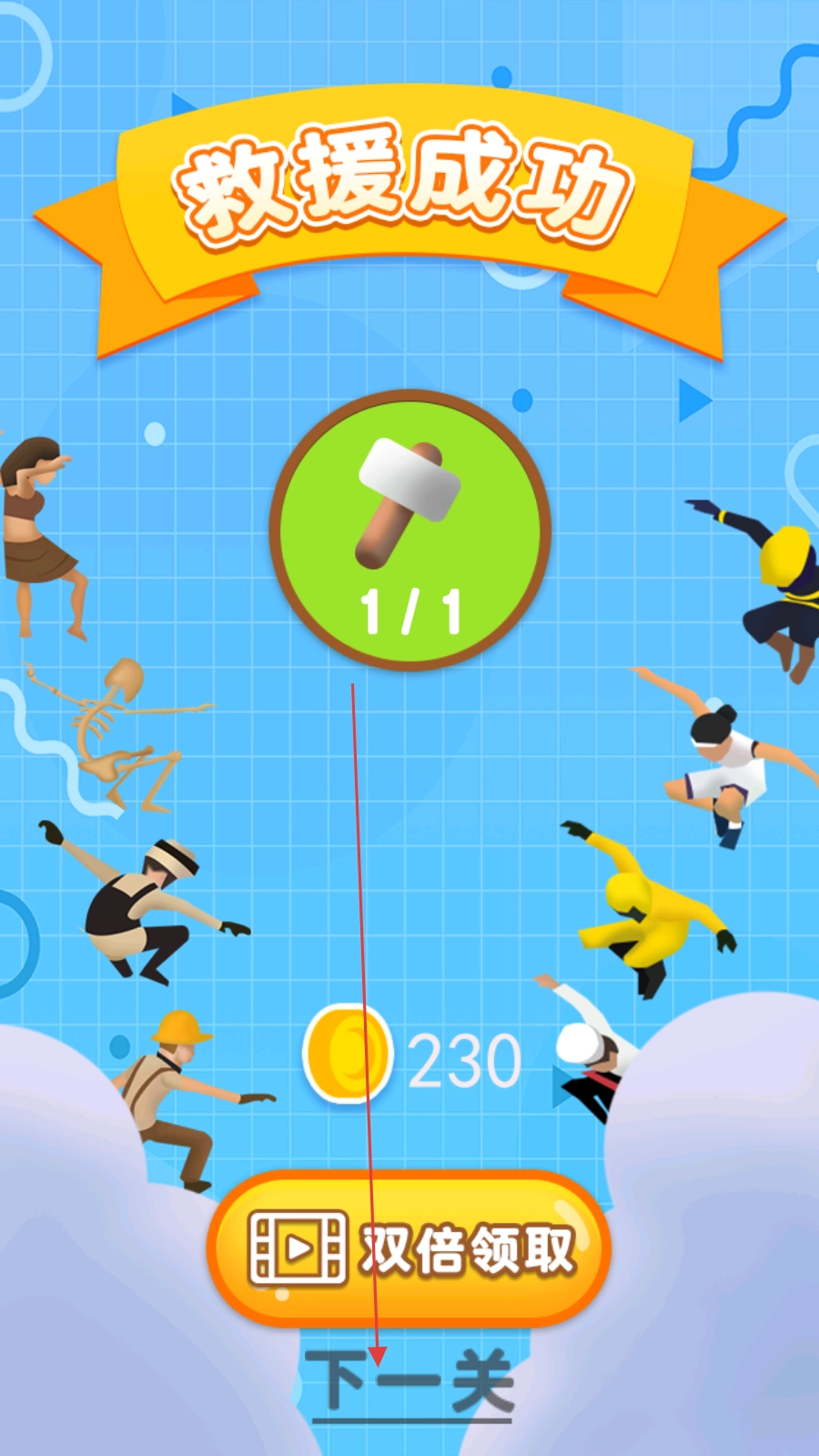 4、救援成功后,点击【下一关】,挑战新关卡。