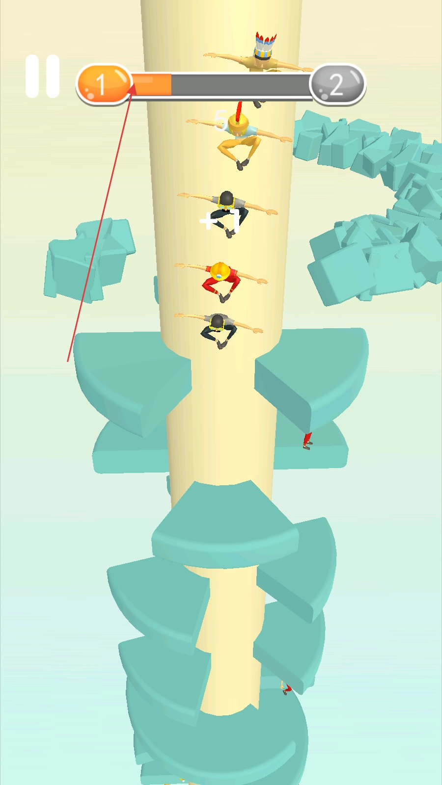 2、滑动屏幕操控角色左右移动,使角色往下掉落。