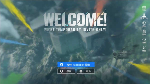玩家启动游戏后进入登录界面,可通过输入账号完成登录,也能以游客身份输入邀请码进入游戏。