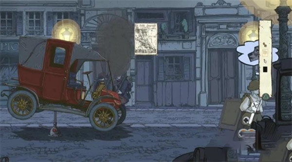 4、获得挂钟后,然后我们在来到路边的汽车附近,将汽车的车轮组装好,然后在来到汽车右边的零件堆中,这时我们会获得一张【海报】。下面我们需要做的就是将修好的汽车放下,这时我们需要一个扳手,而扳手就在汽车的左边就能获得。