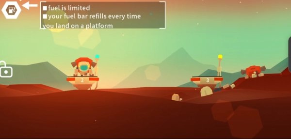 这款游戏的玩法逻辑很直观:先给角色备好能量核心部件,确认好目标方向,然后启动推进机制让角色腾空!角色的航天装备两侧各有一个动力单元,操作时点击屏幕左右区域就能分别触发对应侧的动力装置,角色就会朝着触发的方向移动。由于场景设定在火星,低重力环境会让角色的移动距离和腾空高度都比在地球时更显著,所以建议先通过几次尝试熟悉操作手感,才能更好地控制每次移动的幅度。