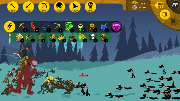 你可以指挥军队组成编队,也能单独操控每个单位,每一个火柴人都由你掌控。