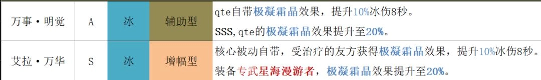 ②有启明的冰系队伍配置如下:队长由蓝位的曲·启明担任,红位首发是万事·明觉,黄位则是万事·明晰梦。
