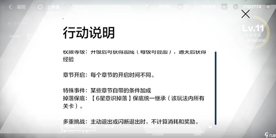 章节第二关是意识关卡,挑战一次要消耗30点体力,通关后能获得3星到6星的意识以及20至25个鉴藏章。需要注意的是,意识关卡每次挑战6星意识的掉率为17%,并且累计通关八次必然会掉落随机的6星意识,这个保底规则是统一继承的。