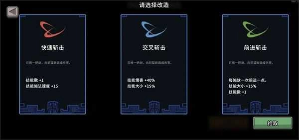 当你踏入技能改造的深层区域后,每清理完一层的敌人,就能得到一些特殊的能力卡片。要是重复挑选同一种卡片,最多能让对应的技能完成三次进阶强化,经过强化后的技能效果会有质的飞跃,可别错过这个提升实力的好机会。