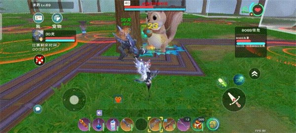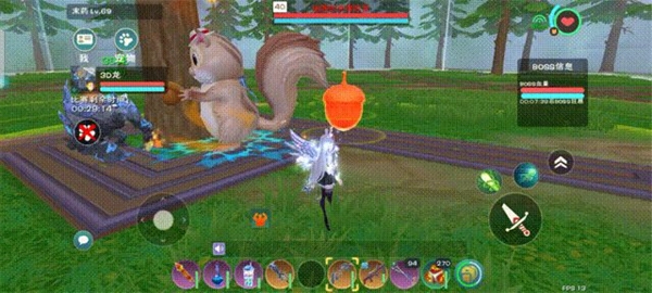 松鼠会不定时召唤炸弹,具体表现为地面出现双层且内外扩散的红/橙色圆圈。遇到这种情况时,要仔细观察周围环境,确保自己选择的闪避位置没有炸弹。(松鼠被自身炸弹炸到会掉血并进入眩晕状态,但通过巨人嘲讽的方式来触发该效果并不值得特意尝试)