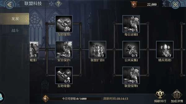 捐献联盟能够推动联盟掌握关键技能,让全体成员都从中获益。联盟里R4及以上的玩家,可消耗联盟勋章来加速正在研发的科技。
