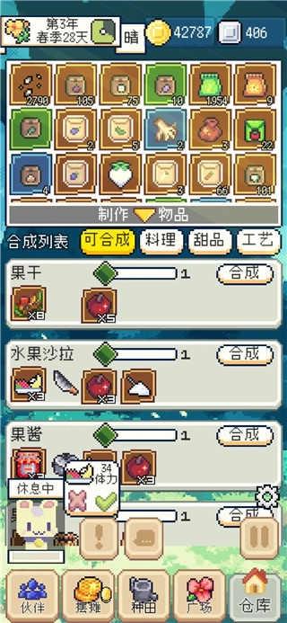 游戏中还有120种食谱与配方可供玩家探索发现,玩家可以运用种植的作物、饲养动物的产出以及在探索过程中获取的材料,制作各类商品并进行售卖。
