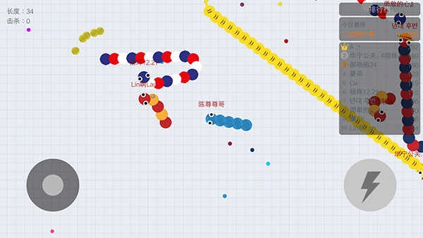 在游戏地图里,你会碰到其他玩家操控的小蛇。要是直接用自己的头部去撞对方的头部,很可能会让自己死掉。想打败对手的话,得巧妙地用自己的身体去撞击对方的尾部,这样对方就会断裂消散,然后你就能吸收掉它们遗留下来的能量豆了。