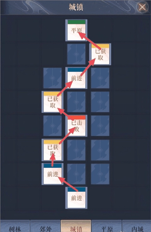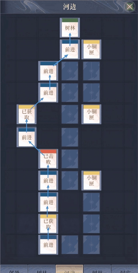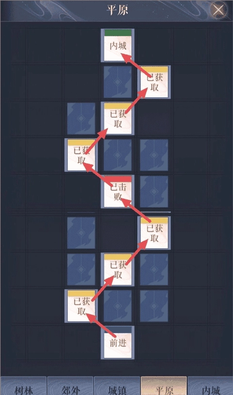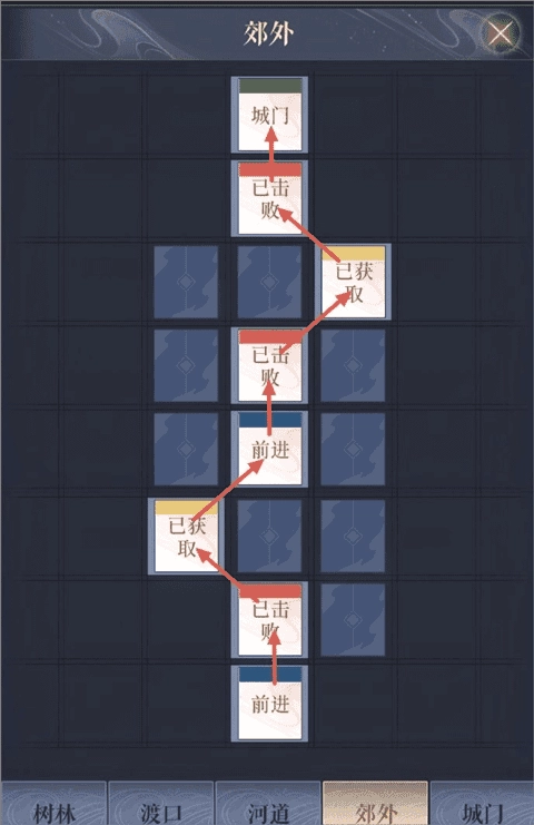 郊外→树林1→郊外→树林1→河边→树林2→洞口→内城→绣衣楼(终点)