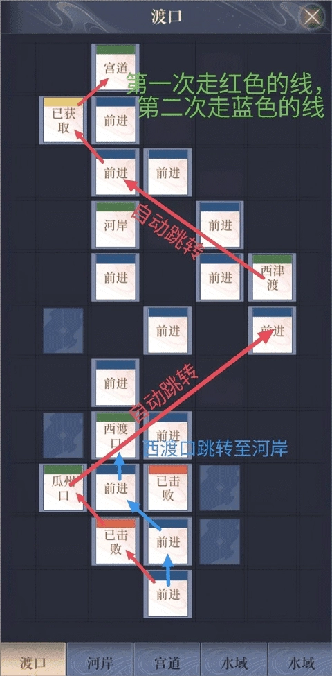 第一次沿着红色路线行进时,能得到四块地图碎片,之后还可以再次进入。