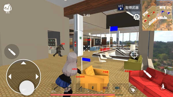 3、左下角的虚拟摇杆可用来控制移动方向,右侧的准星能够帮助瞄准敌人,开火操作则通过子弹图标来触发。