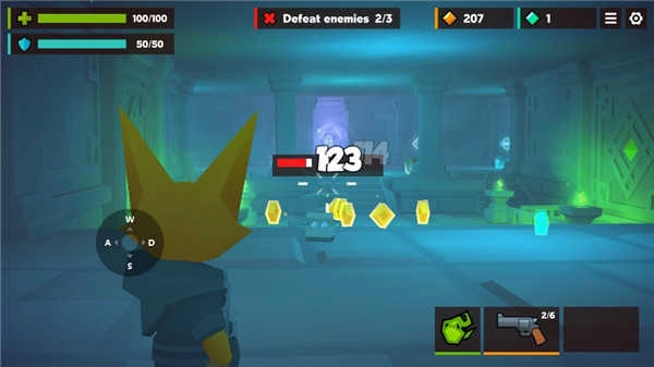 2、进入关卡后,只需把武器对准敌人,系统就会自动发起攻击。等把地图上的所有敌人都清理干净,传送门便会出现,穿过传送门就能进入下一个关卡。