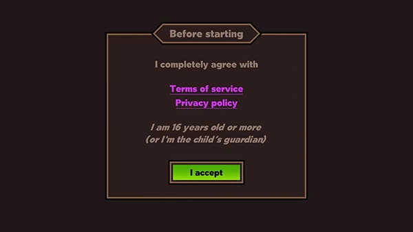 1、野性边境中文版给玩家带来了一段趣味十足的游戏体验。初次启动游戏时,你得同意用户协议,然后选择【I accept】选项,这样才能开启你的冒险之旅。