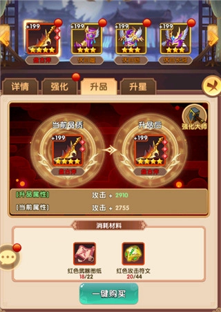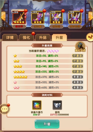 除了基础强化外,还能通过升品进一步提升装备品质,借助图纸和符文改变装备颜色,以此提高整体属性。另外,装备升星同样是战力成长的重要途径之一。