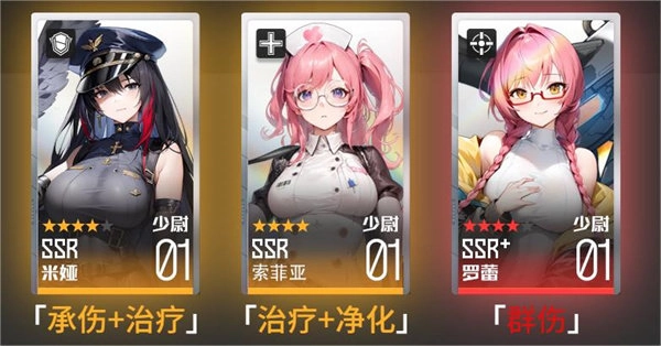 当米娅不在阵容中时,可考虑选用索菲亚或妮娜作为替代:索菲亚拥有净化技能,妮娜则能为队伍增加伤害,二者都可以有效提升阵容的续航能力。