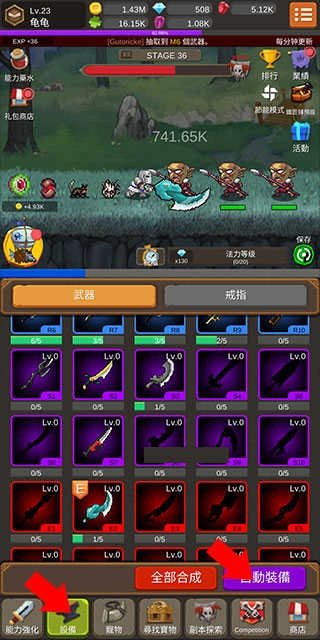 4、抽到的装备可通过点击“设备”按钮并选择“自动装备”,为英雄一键穿戴最强装备,宠物同样适用。