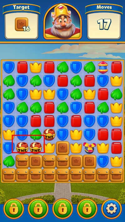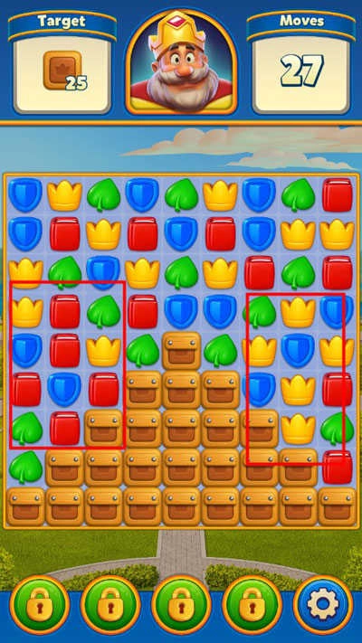 3、把相同颜色的物品组合起来,就能解锁被封印的宝箱,不过要特别注意剩余步数,如果在步数用完之前没能把所有障碍都清除掉,挑战就会失败。