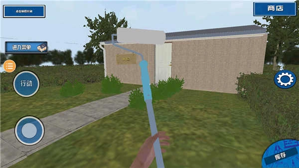 3、如图所示:将角色拖动至房屋前,长按即可开始粉刷墙壁等操作。