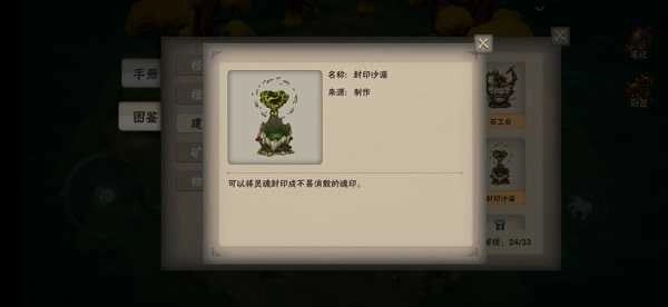 6、封印沙漏:用于封印魂体类物品,如小魂、大魂、恶魂、魂袋。使用方法:靠近沙漏选择魂体点击封印。封印后的食物回血效果增强,保质期延长。