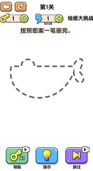 9、在绘画模式中,玩家需要按照提示的图案,以一笔画的方式完成整个图形,这样才能顺利通关。