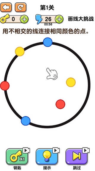 2、进入游戏后,你需要用直线把两个同色的点连接起来,同时要保证这些线条不会出现交叉的情况。