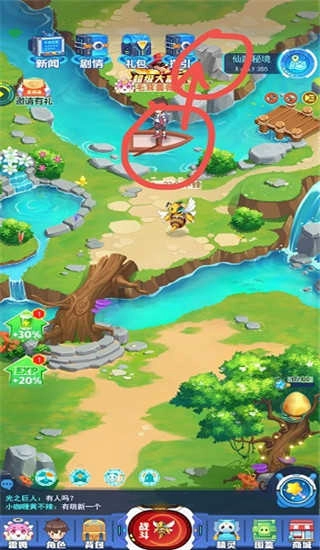 2、第二朵花:再次乘坐小船前往仙踪秘境,重复之前的操作,点击上方空地并抵达陆地,最后通过符文石挑战守卫即可获取第二朵花。如下图所示: