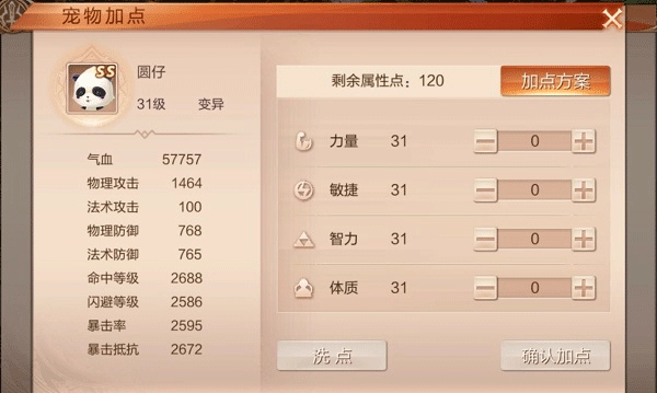 4、宠物洗练:玩家购买的宠物能够通过洗练操作转变为宝宝形态,每次进行洗练都会随机对宠物的各项资质数值产生变动,当宠物资质评分达到特定程度后,建议玩家谨慎开展洗练操作,防止因过度洗练而造成宠物资质出现下降的情况。