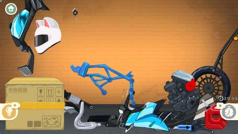 2、接下来开展一系列操作,将零散的零件逐个组装成一辆完整的摩托车。