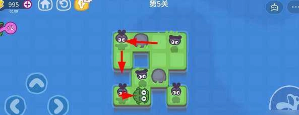 1、当青蛙靠近蚊子所在的格子时,蚊子会飞到空中,这是本关的一个难点所在。