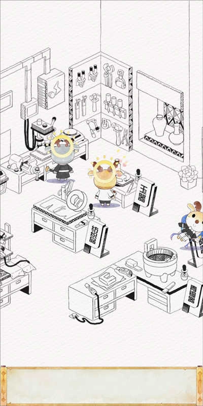 游戏中共有三大种族精灵,分别是猫咪(适合室内工作的白领)、狗子(擅长户外探险的助手)以及小鹿(专业的文物修复师)。