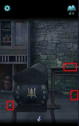 5、运用【刮刀】取得朱砂,依据石头上的红点提示机关盒,从而获得【铜币】。