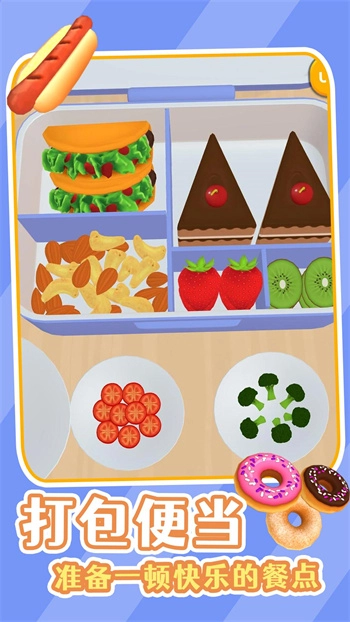 3、整体操作非常简单,只需点击屏幕即可轻松完成美食的制作,和饭盒的整理