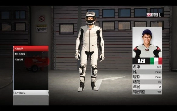(1)车手自定义功能:支持修改车手的驾驶执照(即个人信息)、全身装备,以及调整其驾驶摩托车过弯的习惯。