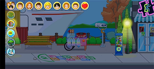 2、左上角是菜单栏,点击上方的人物可以随意拖动自己喜欢的卡通人物拉到空间内,可以让他们去干嘛,想去哪里都可以。